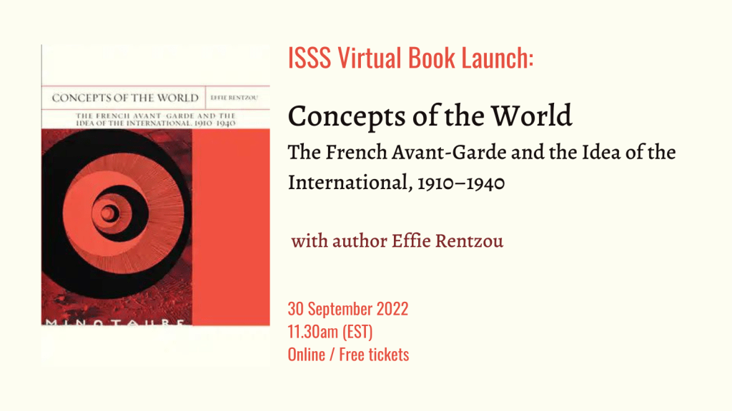 The International Society for the Study of Surrealism is delighted to invite you to the virtual book launch of Concepts of the World: The French Avant-Garde and the Idea of the International, 1910-1940. Author, Effie Rentzou, will be in conversation with Kate Conley.