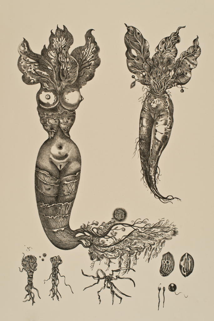 Rikki Ducornet has donated this edition of 50 signed, giclée prints of her work Mandragore Magique.
